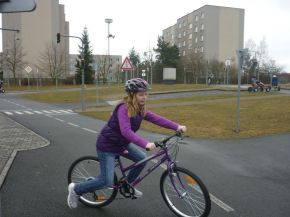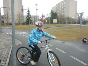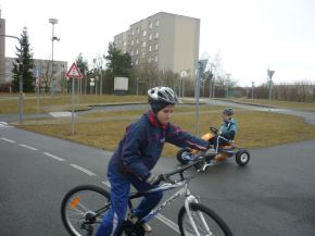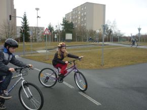 Žáci čtvrtých a pátých tříd na dopravním hřišti (praxe)