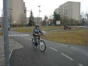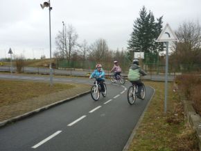 Žáci čtvrtých a pátých tříd na dopravním hřišti (praxe)