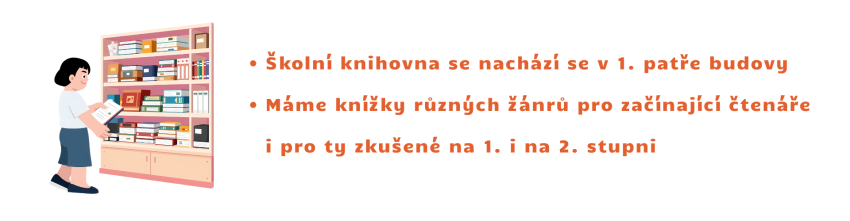- Knihy se půjčují a vracejí vždy ve středu během velké přestávky (9:40–10:00), případně po domluvě i jindy.