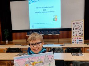 V této soutěži se dvě z pěti vybraných prací žáků 3. A umístili na 3. a 2. místě v kategorii první stupeň základní školy. Na 3. místě se umístil Jakub Mansfeld se svým dílem „U sloupu 148“ a na místě 2. Jan Zeman s prací s názvem „Helicopter, Helicopter“. 14. 4. 2025 jsme byli pozváni na Krajské ředitelství Policie ČR, abychom převzali ceny za vítězná díla. Po předání nás překvapilo představení policejní fenky Kelly, kterou velice zajímaly diplomy všech zúčastněných.