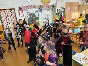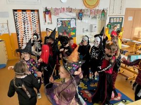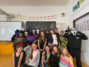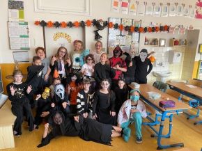 V pátek 31. října proběhlo na 1. stupni strašidelné vyučování. Už od rána přicházeli do školy čarodějnice, duchové, kostlivci i další strašidla a všichni se pustili do plnění strašidelných úkolů. Luštili hádanky, počítali čarodějnické příklady, vyráběli netopýry, pavouky a četli strašidelné pohádky. Během čtvrté hodiny se všichni sešli v tělocvičně, kde se strašidla všem představila. Každý svým hlasem podpořil nejlepší masku. Nakonec zvítězil robot Vládi Levory ze třídy IV. B, druhé místo obsadil Jenda Tomášek jako strašidelný klaun ze IV. C a třetí místo získala malá čarodějnice Kája Uxová ze třídy II. B. Den se nesl ve znamení zábavy, her a strašidelné atmosféry. Žáci si ho moc užili a už se těší na další tematické vyučování.