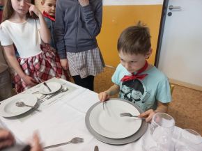 Žáci třetích tříd si v měsíci březnu vyzkoušeli zásady správného chování ve společnosti a pravidla při stolování. Účastnili se projektu Etiketa pro děti. Učili se správně zdravit, slušně se chovat ve společnosti, správně se oblékat při různých příležitostech a také si ukázali zásady správného stolování. Připomněli si i rozdíly mezi zdravými a nezdravými potravinami. Tento den přišli do školy slavnostně oblečeni a moc jim to všem slušelo v lavicích i u svátečního stolu. Na závěr obdrželi diplom za účast v této povedené akci.