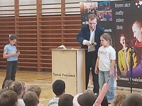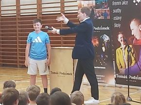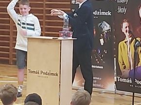 V pondělí 16. června si užili žáci 1. stupně neobyčejné dopoledne. Do tělocvičny přijel kouzelník. Mladík, který se věnuje této profesi už 12 let, zaujal děti i jejich učitele. Pan Tomáš Podzimek předváděl neuvěřitelné věci s kartami, láhvemi, plechovkami i ponožkami. Nechal zmizet vodu z kelímku, společně s dětmi maloval neviditelné obrázky na neviditelný papír. Do každého svého kouzlení zapojoval i publikum, které nadšeně tleskalo a nevěřilo vlastním očím.