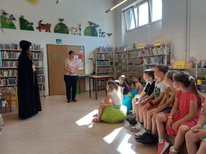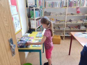 Na konci května už naši prvňáci umějí všechna písmena a nastal čas vzbudit u nich zájem o knihy a četbu. K tomu nám skvěle posloužila návštěva knihovny. Knihovnice dětem vše o knihách a půjčování vysvětlila a bylo hezké pozorovat děti, s jakým zájmem se proplétaly mezi regály a listovaly v knihách. Na konci června je potom čekalo pasování na čtenáře. Rytíř ovšem požadoval důkaz, že si naši žáci zaslouží patřit do řádu čtenářů, a proto mu museli přečíst pár vět. Všichni uspěli a spokojeně si domů odnášeli pamětní list a několik drobných dárků. A knihovna na oplátku získala několik nových členů.