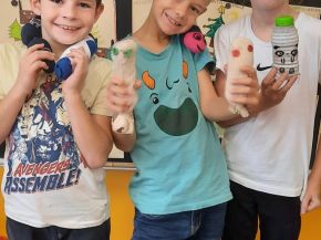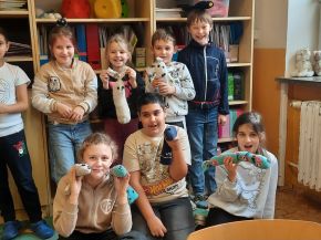 Součástí výuky anglického jazyka je samozřejmě také povídání na různá aktuální témata. Proto se žáci III. A a III. B dozvěděli více o tom, co, jak a proč se recykluje. Sami si navrhli a poté vyrobili hračky z recyklovaného materiálu. Použili staré ponožky, knoflíky, plastové lahve a karton. Práce je moc bavila, z hraček měli velikou radost.