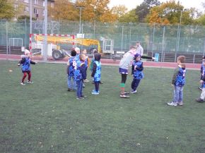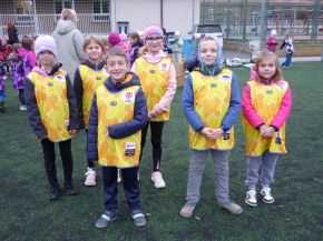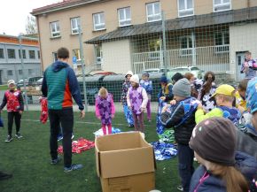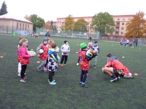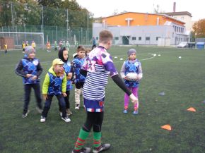V pátek 18. 10. si žáci z prvního stupně vyzkoušeli s trenéry z Rugby Clubu Plzeň tréninkovou hodinu ragby. Nejprve si žáci vybrali barevný dres a rozdělili se do osmi týmů.