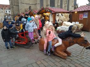 Děti z prvních a druhých tříd, které se účastní během školního roku jazykové přípravy a zdokonalují se v českém jazyce, si zpříjemnily závěr roku na náměstí Republiky. Tam si žáci společně připomněli české vánoční tradice. Prohlédli si betlém a živá zvířátka, dokonce měli možnost si je pohladit. Každý zazvonil na zvon a něco si přál. Snad se všem jejich přání vyplní.