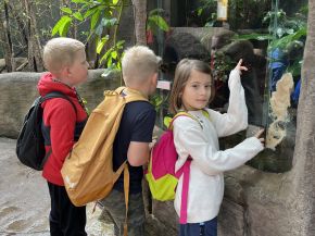 Žáci prvních tříd se v úterý 10. června vypravili na svůj první školní výlet. Zvládli cestu tramvají i pěšky. V zoologické zahradě v Plzni se jim moc líbilo. Kromě zvířátek nechyběly svačina, zmrzlina, další občerstvení, suvenýry, vyhlídkové domečky i odpočinek u výběhu lvů. Tam marně čekali na jejich krmení, i když maso pro ně už bylo připraveno. Moc si užili i pobyt u velkých motýlů, které v přírodě takhle z blízka nikdy neuvidí. Už plánují, že se zase vrátí, aby si doprohlédli i další místa, která ještě nestihli.