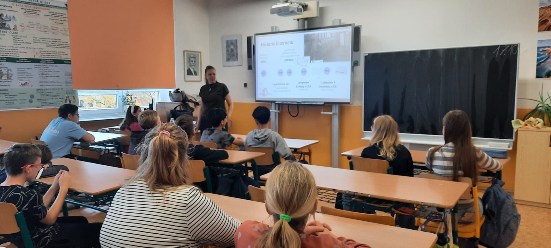 V pátek 17. října proběhla na naší škole beseda s žáky sedmých ročníků na téma bezpečnost na internetu. V preventivním programu „Jsi Online II.“ pořádaného společností MP Education, s. r. o. si žáci rozšířili vědomosti o výhodách a nevýhodách internetu. S paní lektorkou mohli žáci během besedy debatovat o rizicích sociálních sítí, o možnostech zneužití osobních údajů či stále rafinovanějších praktikách, tzv. kyberagresorů.