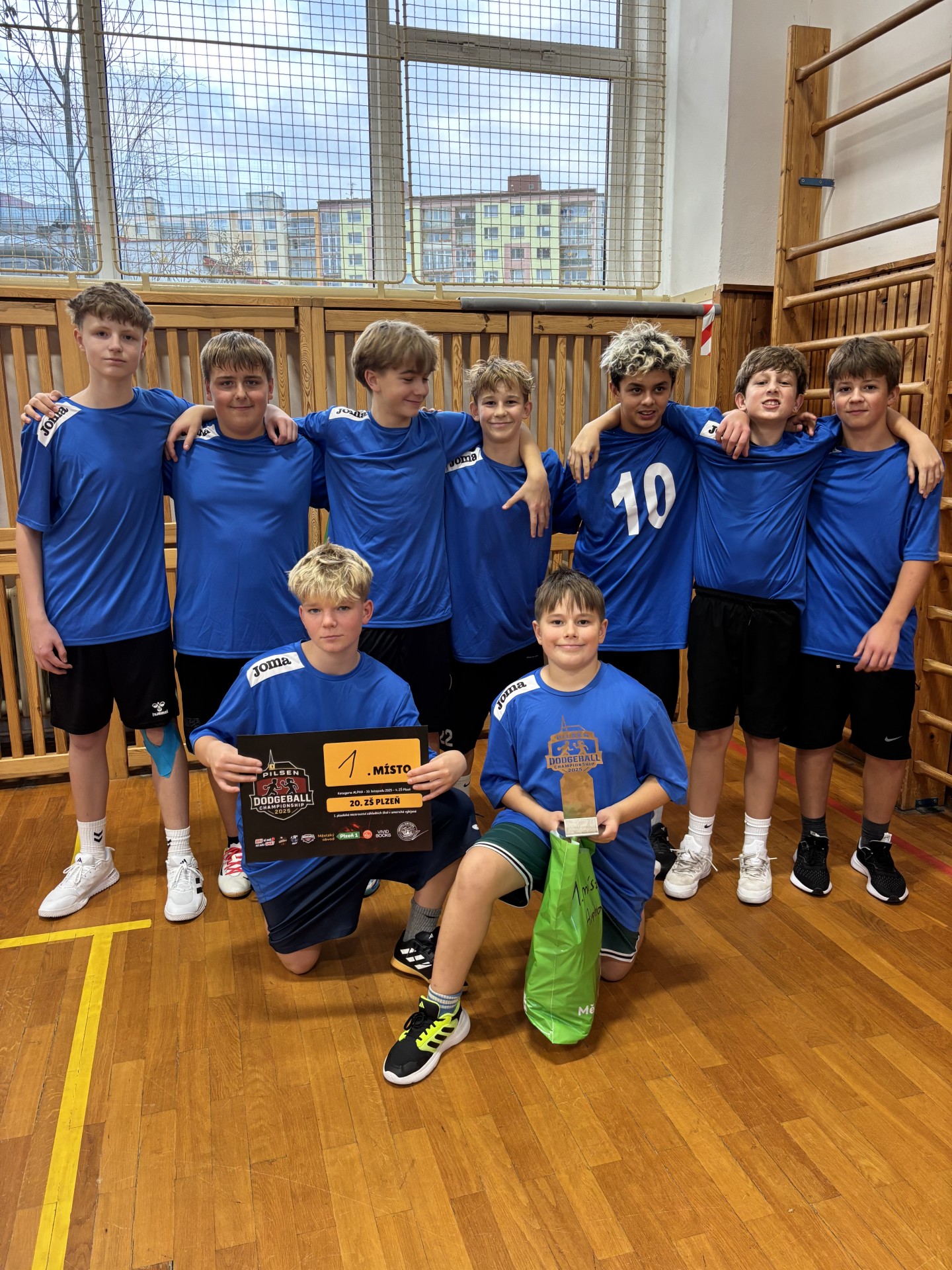 V pondělí 10. 11. 2025 se uskutečnilo na 4. základní škole 1. mistrovství základních škol v americké vybíjené v Plzni. Naše škola se zúčastnila jak ve starší kategorii, tak i v kategorii mladší. Kluci ze starší kategorie i přes velice srdnatý výkon prohráli ve čtvrtfinále, a nakonec obsadili celkové 5. místo. Náš tým z mladší kategorie měl během celého turnaje všechny zápasy hrané na 2 poločasy zcela pod kontrolou a za celý turnaj neprohrál jediný zápas a mohl se tak radovat z 1. titulu mistra plzeňských základních škol v dodgeballu. Tento úspěch byl okořeněn tím, že náš žák Hugo Hrách byl vyhlášen nejlepším hráčem turnaje. Všichni kluci, kteří se turnaje zúčastnili, si zaslouží pochvalu za vzornou reprezentaci školy.