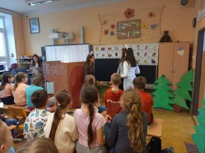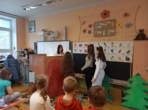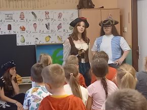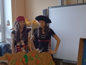 Žáci 9. ročníků si v rámci hodin estetiky připravili divadelní představení pro své mladší spolužáky. Vymysleli a napsali scénář, vyrobili kulisy, připravili kostýmy. Děti tak mohly vidět pohádku O kůzlátkách a příběh O pirátech a pokladu. Herci si své role velmi užili a všem dětem se divadlo líbilo.