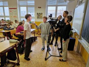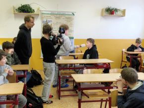 V praktické části mediálního workshopu si žáci mohli na vlastní kůži vyzkoušet, jak vypadá reálná práce v televizním zpravodajství. Dobrovolníci si rozdělili role, někdo se stal na chvíli kameramanem, jiní zase respondenty, reportérem nebo moderátorem a zkusili si natočit vlastní reportáž na své vymyšlené téma. Ostatní žáci ve třídě pak zastávali roli osob, které vystupovali v anketě. Témata reportáží, které žáci vymysleli a zpracovali, byla vtipná a originální, žáky práce obohatila o nové zkušenosti a velmi si ji užili. Některé z nich celý workshop jistě inspiroval a třeba je někdy v budoucnu uvidíme na televizních obrazovkách.