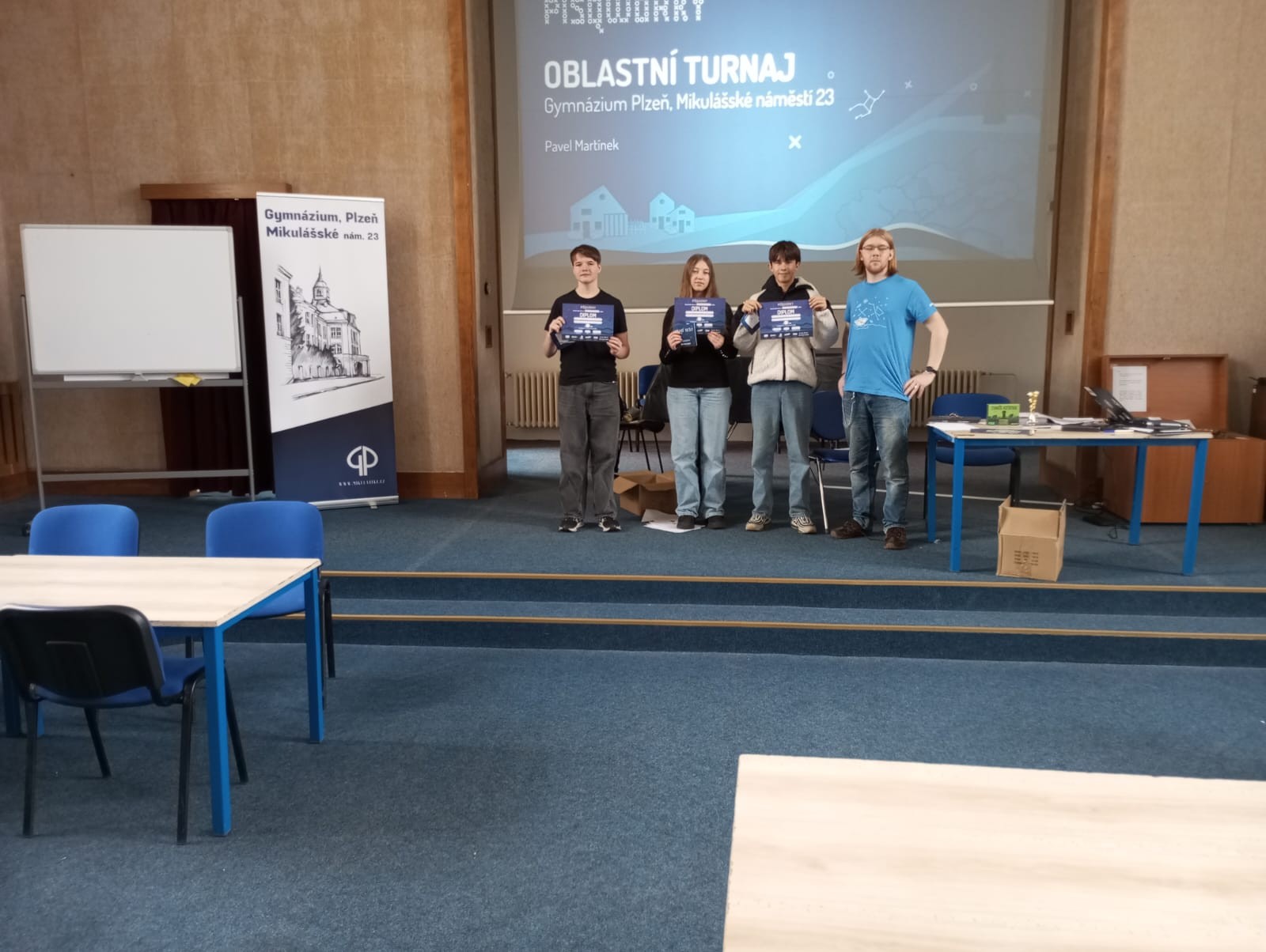 V pátek 14. 11. 2025 se v Plzni na Mikulášském gymnáziu konal oblastní turnaj v piškvorkách, který byl vyhlášen pro kategorii žáků druhého stupně (6. a 9. třídy + příslušné ročníky gymnázií). Dvacátou ZŠ reprezentovaly 4 trojčlenné týmy z celkových 23 účastníků.