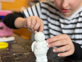 VI. C si v říjnu vyzkoušela, jaké by to bylo žít v době kamenné, zhruba 25 000 let před naším letopočtem. Možná by nějaký podzimní sychravý den trávili tím, že by si z hlíny zkoušeli něco vymodelovat.