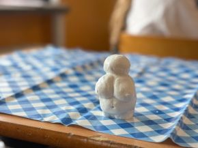 A tak jsme to zkusili také. Z modelíny si každý vytvořil buď svou vlastní originální venuši, nebo muže a dokonce proběhl i pokus o znázornění mamuta.