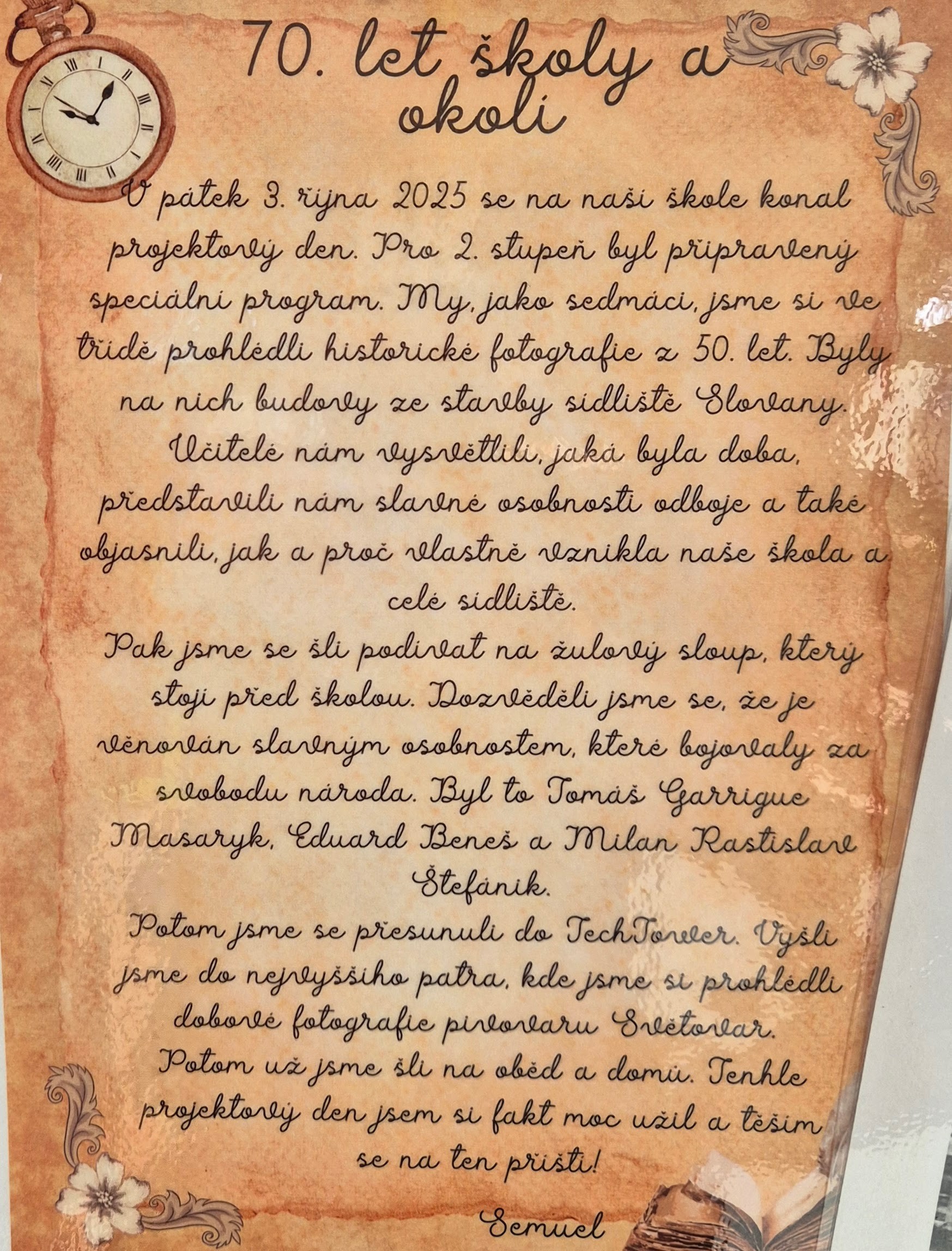 Projektový den se vydařil a přinesl nejen nové poznatky o minulosti školy i města, ale také spoustu zábavy a zajímavých zážitků.