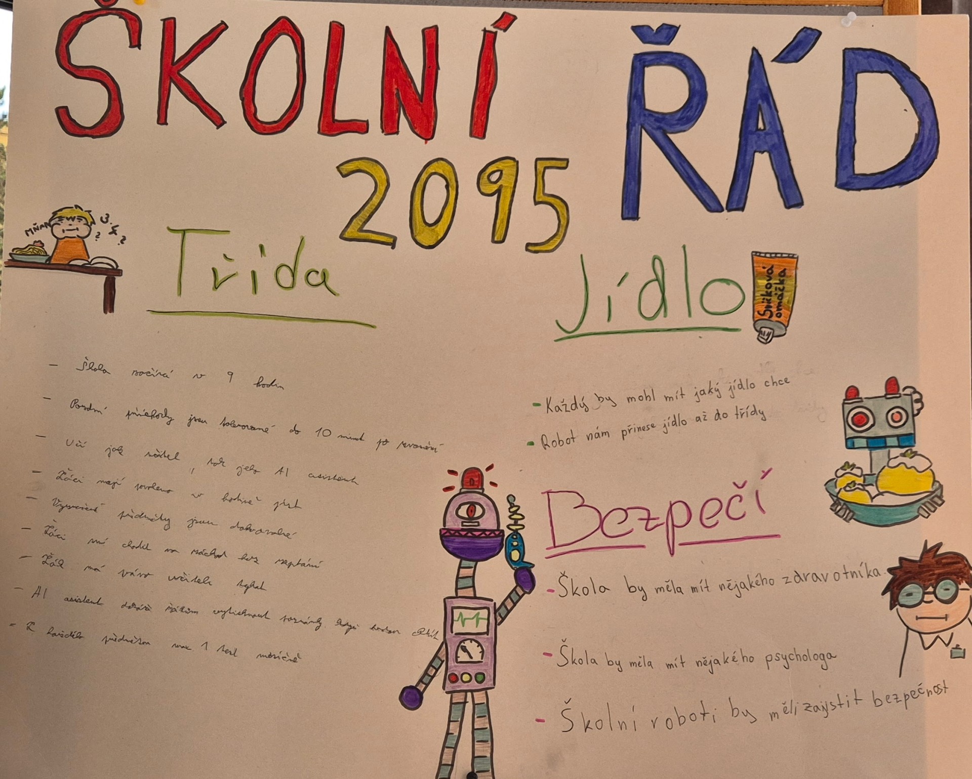 Deváťáci zvolili modernější pojetí – vyfotili sebe i naši školu v současnosti, snímky pomocí aplikací „postaršili“ a napsali e-mail svému budoucímu já.