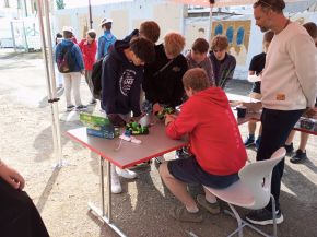 Na druhém stanovišti se žáci seznámili s elektromobilitou a s výhodami a nevýhodami automobilů s elektrickým motorem. Dále si mohli vyzkoušet virtuální realitu, zahrát si deskové hry, seznámit se s drony a roboty, otestovat své schopnosti na závodním simulátoru, prohlédnout si interiér autobusů městské hromadné dopravy i z pohledu řidiče, experimentovat na pokusech s tekutým dusíkem nebo si prohlédnou stroje a zbraně armády ČR.