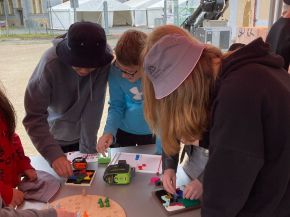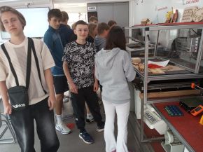 Žáci byli rozděleni do celkem šesti skupinek po cca 15 žácích. Skupinky byly v průběhu akce rozmístěny na dvou stanovištích. První se nacházelo v pojízdné učebně (kamionový návěs), ve které byla umístěna dílna s ukázkami technologií – 3D tisk, laserová řezačka, řezací plotr. Žáci si následně jednu technologii vybrali a pracovali na svém vlastním výrobku (vlastní potisk, klíčenka, podtácek).
