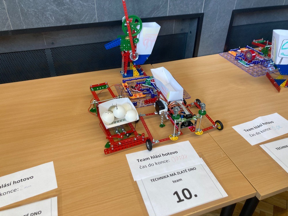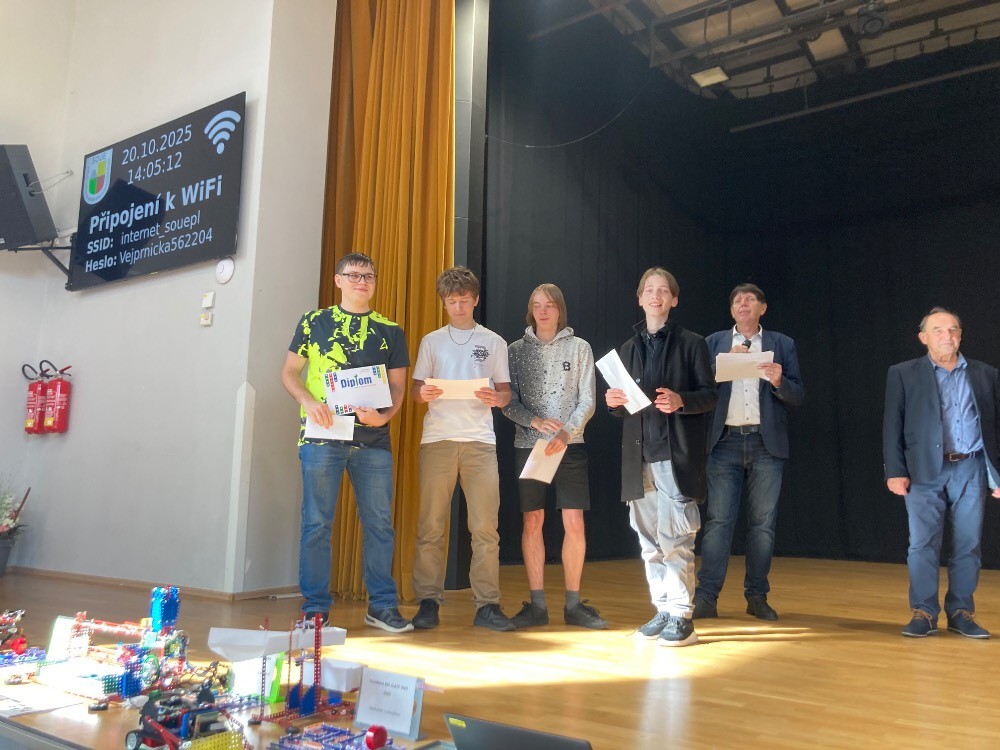 Úkolem bylo sestrojit funkční přepravník, pumpu a váhu ze stavebnice Merkur a Boffin. Na práci měli žáci časový limit 4 hodin, a poté výrobky hodnotila odborná komise. Jednotlivé týmy byly rozděleny do tří kategorií – gymnázia, střední odborná učiliště a střední odborné školy. Náš tým získal 1. místo v kategorii střední odborné školy. Moc gratulujeme.