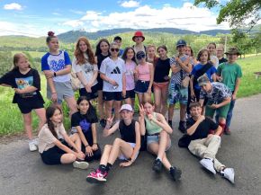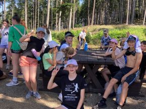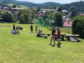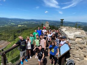 Ve dnech 17.-19. 6. jsme se vydali se třídou VI. B na třídní výlet do Kašperských Hor do zdejšího penzionu Holeček. V pondělí v 9 ráno na nás u budovy školy čekal minibus, který nás dopravil na místo pobytu. První den byl ve znamení seznamování se s okolní krajinou a samozřejmě i penzionem, včetně oběda a později i večeře. Večer přišel na řadu „pubquiz“ s různými otázkami pro děti, ty byly rozděleny do týmů a na vítěze čekala sladká odměna. V úterý po snídani jsme vyrazili na celodenní výlet, jehož hlavním cílem byl hrad Kašperk a nedaleký Pustý Hrádek. V průběhu cesty děti plnily různé úkoly zaměřené na vzájemnou spolupráci. Po výšlapu na hrad nás čekala nejen objednaná komentovaná prohlídka, ale i naprosto nádherný výhled na celou Šumavu, včetně místního občerstvení. Večer nás samozřejmě nemohl minout fotbalový přenos ČR proti Portugalsku, kdy děti zodpovědně fandily. Poslední den se nesl ve znamení sportovních, orientačních a dovednostních her na hřištích u penzionu. Celý pobyt nás provázelo nádherné, slunečné a teplé počasí, takže nám chyběla jen nějaká nádrž s vodou k osvěžení. V odpoledních hodinách přišel čas loučení s krásným prostředím Kašperských Hor a minibus nás opět odvezl zpět k naší škole.
