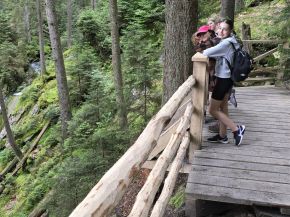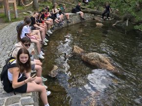 Ve čtvrtek 27. června se třída VII. A vydala na školní výlet na Šumavu. Sešli jsme se v 6:40 na Hlavním nádraží v Plzni, odkud jsme v 7:00 odjeli vlakem na Špičák. Po výstupu z vlaku jsme zamířili po turistické stezce k Čertovu jezeru, kde jsme si udělali krátkou přestávku na svačinu a nasbírali síly před výstupem na vrchol Špičáku. Po náročném výšlapu jsme si dopřáli obědovou pauzu, během které většina žáků třídy vystoupala na Špičáckou rozhlednu, odkud se naskýtá nádherný výhled do krajiny. Následně jsme přes Rozvodí došli k Černému jezeru, kde jsme si na Odpočinkovém místě (obrovská lavička) pořídili společnou třídní fotografii. Při cestě Královským hvozdem směrem k vodopádu Bílá strž nás nezvaně doprovázela bouře, ze které jsme měli velký respekt. Po prohlídce vodopádu jsme zamířili na vlakovou zastávku Hamry - Hojsova Stráž. Tato zastávka se nachází skoro na vrcholku poměrně dlouhého a prudkého kopce, který nás všechny pořádně prověřil. Nakonec jsme se vrátili vlakem domů do Plzně a přemýšleli nad zážitky, které nám tento den přinesl. Výlet se nám vydařil skvěle a všichni už se těšíme, jaká další „túrka“ nás čeká příští rok...