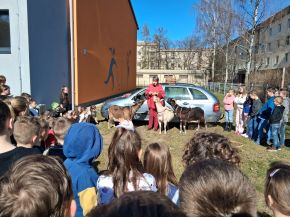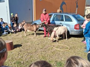 V březnu navštívily naši školní družinu tři cvičené kozí dámy s interaktivním programem. Celý program byl zábavný a poučný a byl doplněn tematickými výcvikovými prvky, které žáky pobavily. Nejenom žáci, ale i paní vychovatelky se dozvěděli spoustu zajímavostí o těchto zvířatech. Nejvíce nadšení byli žáci z procházky s kozou po školní zahradě. Vystoupení bylo velmi pěkné a všichni jsme si odpoledne se zvířátky moc užili.