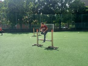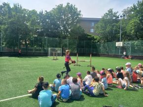 Čtvrteční odpoledne jsme se všichni shromáždili na školním hřišti, abychom zhlédli a vyzkoušeli si sport, který má své kořeny ve Finsku – Hobby horsing. V krátkosti jsme se dozvěděli historii a vše, co tento moderní sport obnáší. Poté už nám jezdkyně, společně se svými Hobbíky, ochotně předváděly dvě základní disciplíny – drezuru a parkur. Na závěr si každý, kdo měl zájem, mohl vyzkoušet jízdu s Hobbíkem a ti odvážnější i skok přes překážku.