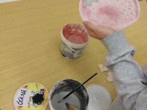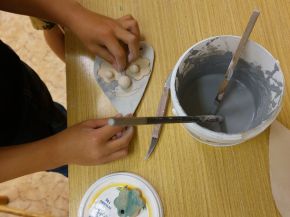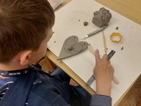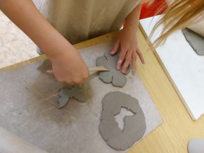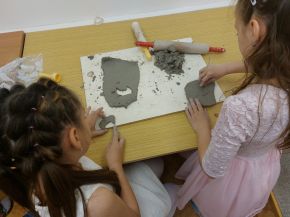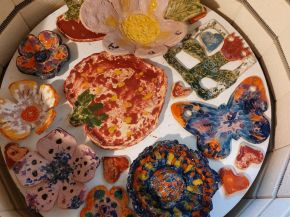 Žáci navštěvující školní družinu měli druhou polovinu roku možnost vyzkoušet si, jaké to je být keramikem, a tak vznikla řada výrobků většinou s jarním nebo letním motivem. Výsledkem jsou ovocné tácky, květiny, ale zkoušeli jsme si upéct třeba i pizzu. Hráli jsme si s vykrajovátky na cukroví, ti odvážnější vytvořili i drobný hmyz opilující květinu, a sestavili jsme dokonce i helikoptéru. Oblíbené mističky a srdcový motiv nesměly nechybět.