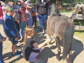 Co všechno děti zažily? Krmení zvířat – každý si mohl vyzkoušet, jak se podává seno kozám, jak si berani pohnávají na mrkvi. Dozvěděly se spoustu zajímavých informací, třeba, že dikobraz bodliny nestřílí a jak se chovat, když potkám prase divoké. Kontakt se zvířaty – děti si mohly pohladit králíky, ovečky, slepice a koníky. Na nich si mohly vyzkoušet česání a hřebelcování. Pro mnohé to byl vůbec první kontakt se zvířaty a nadšení bylo nepřehlédnutelné.