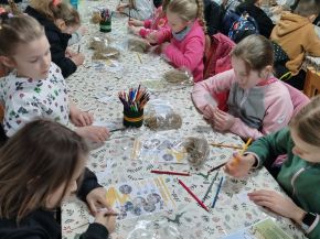 9.4. 2025 jsme se školní družinou navštívili statek v Újezdě nad Mží nedaleko Plzně. Čekal nás program na téma Velikonoce. Poslechli jsme si vyprávění o zvycích dávno minulých i současných. Děti si vybarvily velikonoční zapichovátka, vytvořily z těsta jidáše, které si po upečení mohly dát na svačinku. S poutavým výkladem si také prohlédly zámek a starodávnou kuchyni. Viděli jsme také krásné, pracně zdobené kraslice a navštívili tajemnou jeskyni, kde si kluci i děvčata mohli vylovit z truhly poklad. Odpoledne s hezkým povídáním a pěkným jarním počasím nám rychle uběhlo. A tak nás čekala už jen cesta domů.