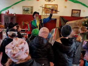 9.4. 2025 jsme se školní družinou navštívili statek v Újezdě nad Mží nedaleko Plzně. Čekal nás program na téma Velikonoce. Poslechli jsme si vyprávění o zvycích dávno minulých i současných. Děti si vybarvily velikonoční zapichovátka, vytvořily z těsta jidáše, které si po upečení mohly dát na svačinku. S poutavým výkladem si také prohlédly zámek a starodávnou kuchyni. Viděli jsme také krásné, pracně zdobené kraslice a navštívili tajemnou jeskyni, kde si kluci i děvčata mohli vylovit z truhly poklad. Odpoledne s hezkým povídáním a pěkným jarním počasím nám rychle uběhlo. A tak nás čekala už jen cesta domů.