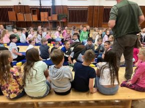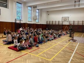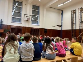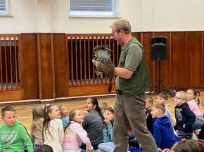 Ve čtvrtek 16. 4. 2024 se žáci 1. stupně zúčastnili v tělocvičně školy zábavného vzdělávacího ekoprogramu s živými zvířaty a jejich předvedení ve volném letu. Mohli zažít přelety ptáků nad svými hlavami a přilétání zvířat na ruku. Program byl velmi přínosný a všem dětem se moc líbil.