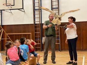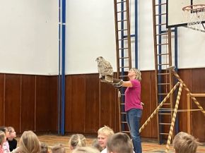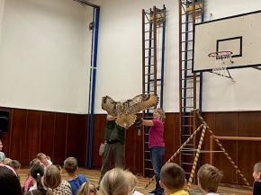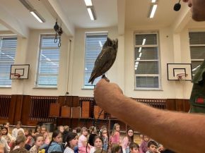Ve čtvrtek 16. 4. 2024 se žáci 1. stupně zúčastnili v tělocvičně školy zábavného vzdělávacího ekoprogramu s živými zvířaty a jejich předvedení ve volném letu. Mohli zažít přelety ptáků nad svými hlavami a přilétání zvířat na ruku. Program byl velmi přínosný a všem dětem se moc líbil.