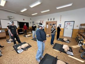 Žáci si nasazují VR brýle a rázem se ocitají u člověka, který potřebuje pomoc. Není to hra. Je to situace, kdy se počítá každá vteřina. Děti musí zachovat klid, přivolat záchranku a začít s resuscitací – přesně tak, jak by to mohly jednou zažít i ve skutečném životě.